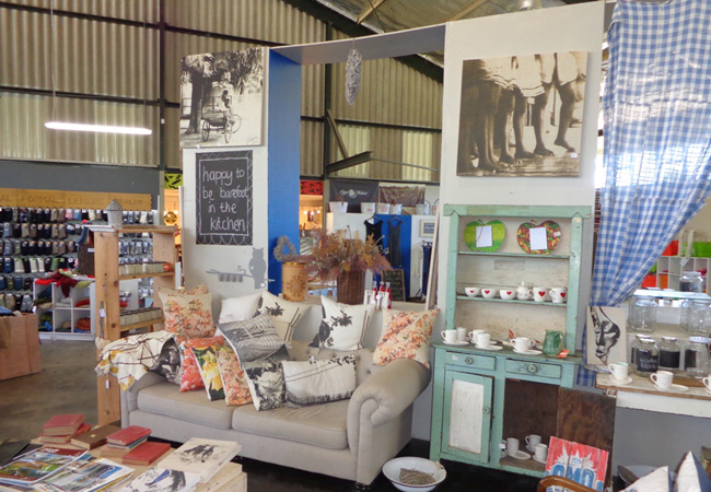 The Mohair Mill is a lifestyle and décor centre brimming with exquisite mohair goodies, décor items, clothing, accessories, art and more. The mohair is sourced locally from beautiful goats (some of whom live in the shaded area opposite the warehouse) and there is a huge focus on job creation in the area. The mohair products include scarves, socks, blankets, rugs and so on. There are also plenty of leather products (such as shoes, hats, belts and furniture).