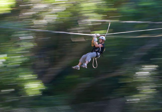 The adventure commences with a thorough briefing explaining safety and the provided equipment. Suitable for ages 7 - 70, weighing up to 120kg (no pregnant woman allowed) this activity is a gentle glide across ten cabled slides to ten wooden platforms built high up in the trees. These lookout decks provide a resting place for you to breathe in the dense greenery and stand in awe of the view.