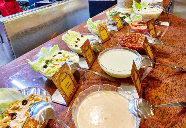 There is a breakfast buffet every day from 07h00 to 10h30. The lunch menu is an a-la-carte one that is made up of lip-smacking dishes celebrating traditional flavours with innovative twists. Lunch is served from Monday to Thursday, 12h00 to 16h00. On Fridays, the lunch buffet consists of six courses and is served between 14h00 and 16h00. The lunches on weekends and public holidays are made of 52 dishes and are served between 11h00 and 16h00.