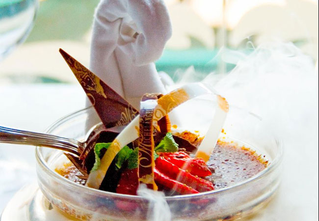 The a la Carte menu opens with sublime starters, ranging from Honey-mustard Smoked Salmon, to Char-grilled Calamari and Fresh Mussels. With salads such as the Prawn and Black Truffle Oil, and the Crispy Duck salad, you'll find it difficult not to order them as a main. The mains menu is not too overwhelming in size, illustrating the care and precision taken with each dish. Your taste buds will be overwhelmed with the Wasabi Grilled Salmon served with Scallops, Ostrich steak massaged with peppercorns and mustard seeds, and the Gorgonzola Beef Fillet. If you still have space there are some phenomenal deserts to choose from.