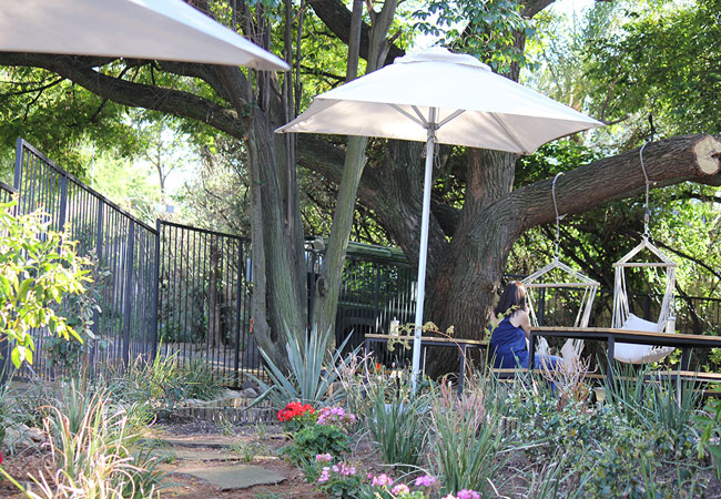 There is seating inside for chilly Gauteng winter mornings, or outside (either under covering or in the scenic garden). Enjoying your meal and coffee while surrounded by the greenery of the garden is a tonic, a complete retreat from the Jo'burg humdrum.