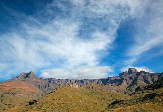 Walk the escarpment of the Drakensberg. The Heritage Trail scales the northern Drakensberg's hallmark – the Amphitheatre, a sheer basalt wall that is considered one of the world's most impressive cliff faces.
