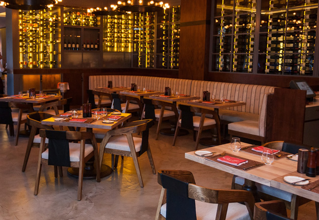 The restaurant has a number of dining area features. There is the Chef's Table, a private dining area, the open kitchen and a spacious bar. Patrons can sit indoors or outdoors on the upper and lower areas of the Terrace.
