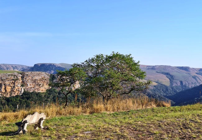 Crags View Loop ±3.5km: This route offers a short climb on gravel road and farm track to an unparalleled view of the Umtamvuna Nature Reserve. The steady descent is on built single track through grassland and forest, back to the junction close to Benderloch Dam.
