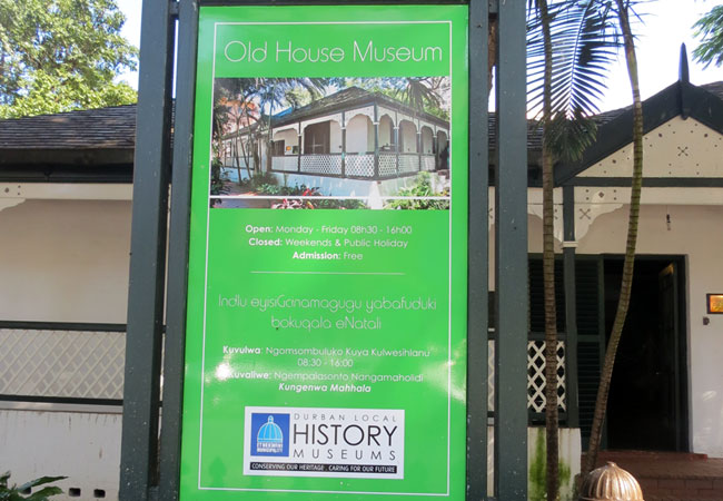 The Old House Museum is housed in an authentic old house typical of the Colonial era. Set on park-like grounds this veranda home's replica architecture is historically notable. Built by the Durban City Council, this site was donated for heritage purposes by George Churton Collins and opened on the 12th of June 1954. It serves to represent Durban's first example of the elite class lifestyle introduced by the Victorian Settlers.