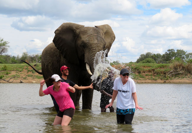 There are currently three elephant cows and two bulls at Adventures with Elephants in Bela Bela, as well as two young ones that have recently been added to the family (Zambezi and Bela, who were due to be culled). These elephants share the scenic reserve with kudus, warthogs, meerkats, giraffes, steenboks, and zebras.