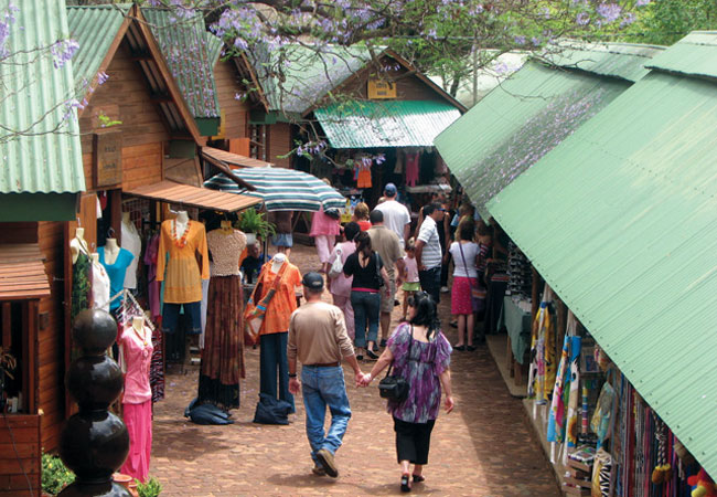 Built under the shade of giant old trees the Welwitschia Country Market in Hartbeespoort Dam about an hour from Johannesburg has evolved from the idea that small is neat and good. Grouped around a charming and imaginative aviary - the delight of children of all ages - is a collection of forty wooden shops and a covered area housing a wide range of merchandise. The brick paved streets of the village allow pleasant meandering through the stalls and shops, with places to sit and enjoy a rustic atmosphere.
