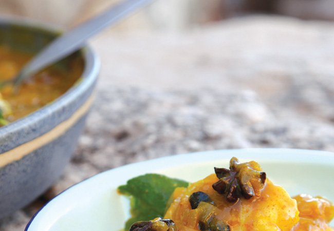But it is not so far inland to exclude seafood - snoek sizzles on the braai to be enjoyed with traditional potbrood and home-made jams with mussels, rollmops, pickled fish and crayfish on the menu. You will also see that you're in for some Sandveld boerekos when you sniff lamb on the spit and the huge venison or waterblommetjie potjies, sweet potatoes in a sweet sauce or curried tripe. It is all even more impressive at night, when the rocks lit up and the stars twinkle overhead. Local wines are available and we are fully licensed.