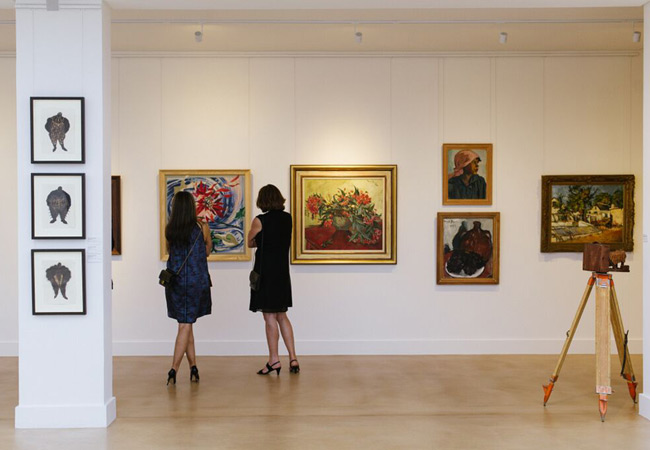 The Equus Gallery at Cavalli Estate is a subterranean 600 square meter space with an innovative stretched backlit ceiling conceptualized to simulate daylight, (that has become quite a talking point and draw card to the estate). Apart from the regular contemporary exhibitions in the main Equus exhibition space at 6 -12 week intervals, three additional exhibition spaces showcase valuable permanent collections comprising of a collection of artworks by South African Masters (Pierneef, Stern, Laubser, Tretchikoff etc.), as well as an extensive collection of sport and entertainment Memorabilia that include some of the oldest references to the Springbok Rugby Team and various other local and international items.