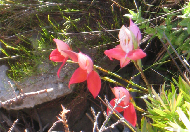Whilst still something of a steep climb (anything up Table Mountain involves climbing), Myburgh's ravine on Table Mountain is easy to reach. The ravine overlooks Hout Bay and is particularly well known for its red Disa flowers during summer (Jan through March).