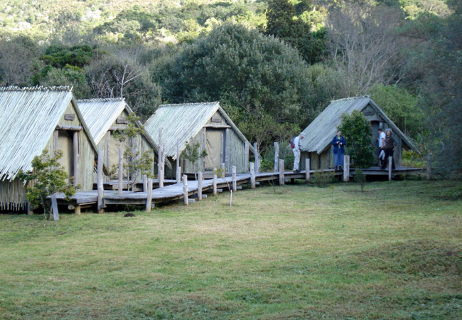 The permanent structure tents with canvas interiors are completely weatherproof and have luxuriously thick mattresses for camping sites. More about it here.