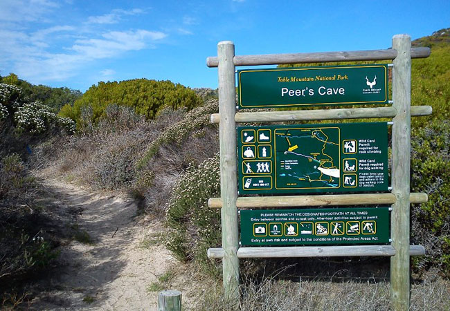 You can reach Peers Cave from either Fish Hoek or Ou Kaapse Weg. Drive up from Sun Valley heading in the direction of Cape Town and find the signboard to Peers Cave to your right in a small layby, or park the car off the road at one of the alternative Silvermine parking areas, to the right just before the San Michel Estate, Noordhoek for a longer haul.