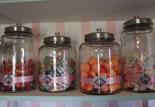 In between are a couple of nooks that serve as lounges, one of which has its own working gramophone, and old-fashioned pink or turquoise kitchen units filled to bursting with jams, teas, pies, breads and quiches.