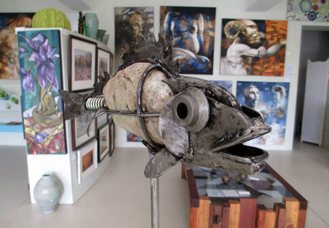This is a new gallery on the main road in Napier. Fine art, Sculpture, Ceramics, Mixed Media, Functional art, design. Ulrich Riek, partner and the main inspiration for the gallery, uses mostly found items or recycled items that have lost their purpose in life; this too is a recreation.