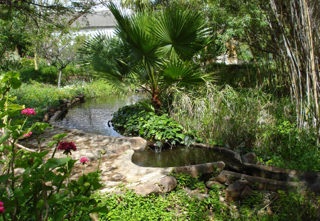 At Temenos we encourage our visitors to take time out to enjoy beauty, to be still and to practice awareness as a way of nurturing body and soul. One of the experiences guests enjoy most is walking in our spiral garden. A spiral is deeply symbolic and when one mindfully enters a spiral, one may experience a deepening of the awareness of one's own spiritual journey. Our spiral is also unique in that five great spiritual traditions are quietly honoured, each with its own shrine. Here the war has ended! And in the shade of the cyprus "God may come to rest".