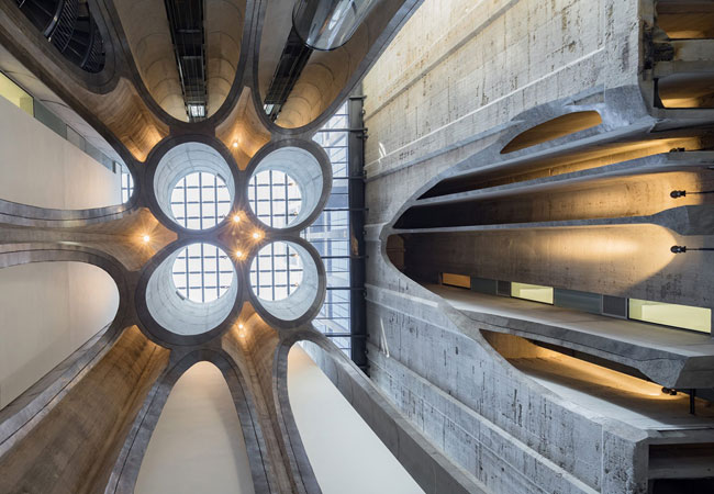 At any given time, there are scores of exhibitions adorning the walls and spaces of Zeitz MOCCA. As visitors meander amongst them, they become a part of the fantastic approach to design. This is because, instead of destroying the silos to make big open spaces for these unique pieces, the architects used the contours of the silos, carving them out to create cunning dimensions that flow. Contoured tubes and tunnelled spaces invite explorers to be part of this leading-edge museum. The open atrium space invites the light to flood the rooms, while the patterned glass adds a certain fairytale feel.