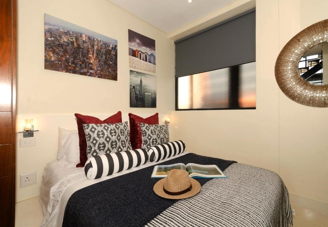 This is arguably the most prestigious 5-star graded apartment in the new Point Precinct. The main living areas are double volume and all three rooms have glass walls and doors facing the ocean. Each bedroom is furnished with a King-size bed and has an en suite bathroom. The main bedroom is suspended in the air with glass walls framing the view and it has a walk in shower and toilet with a separate bathtub and basin. The second and third bedrooms have an en-suite bathroom fitted with a shower, toilet and basin. The kitchen is fully fitted with a separate scullery, housing a dishwasher, washing machine and tumble dryer. The kitchen dining area has a Caesar stone centre island surrounded by eight white leather chairs. The kitchen is equipped with stove, oven, microwave, kettle and toaster. The apartment has free WiFi. The entire apartment is fully tiled with ducted air-conditioning. The TV lounge is equipped with a flat screen TV, DStv, DVD player and board games. This apartment has its own deck from which you can enjoy lazy afternoon braais. The apartment block has a communal swimming pool.