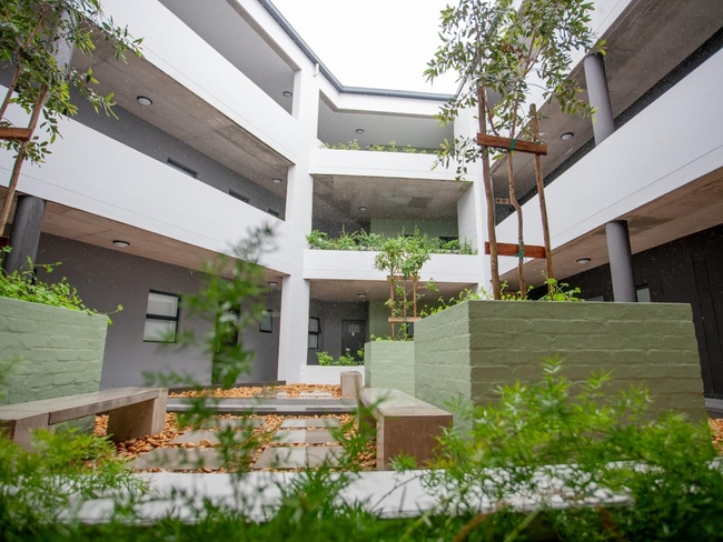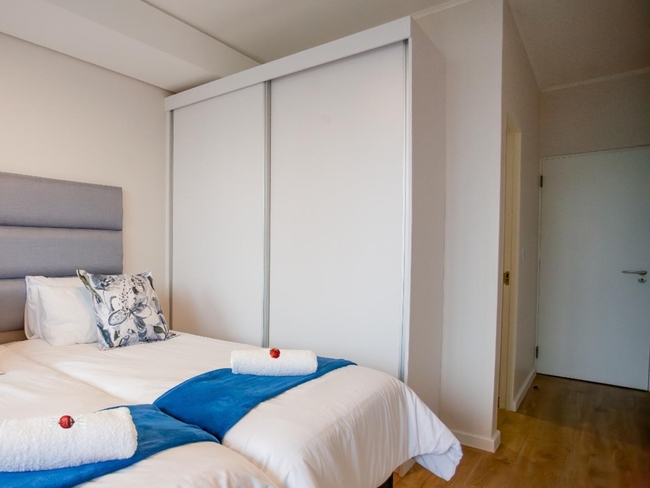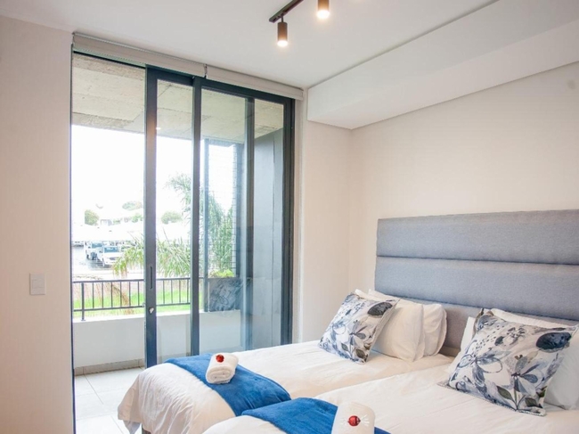 This fully furnished apartment features two bedrooms, each furnished with two single beds, and two bathrooms for added convenience. The apartment boasts a well-equipped kitchen complete with laundry appliances, making it ideal for longer stays. The open-plan living area leads onto a balcony, offering serene garden views, perfect for relaxation. In terms of amenities, guests can enjoy complimentary Wi-Fi, a TV with DSTV and Netflix, a comfortable sitting area, and a desk for those needing to work. The apartment is non-smoking and includes a dining table for meals. Additional features include a washing machine, tumble dryer, iron and ironing board, coffee/tea facilities, a refrigerator, microwave, oven, and toaster, ensuring a comfortable, self-catering experience. For outdoor enjoyment, the balcony is furnished with outdoor seating, and there is a terrace with braai/barbeque facilities. Bathroom amenities include both a shower and a bathtub/shower combination. The apartment offers a cleaning service for added convenience.