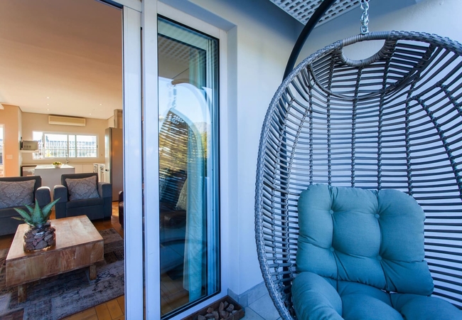 The modern kitchen is fully equipped and includes a stove with an oven, a microwave, a fridge / freezer, dishwasher, washing machine, tumble dryer and a breakfast bar with seating for meals to be enjoyed at. The lounge consists of a flat-screen TV with DStv as well as a lounge suite for guests to relax on. The lounge opens onto a furnished balcony, which offers a lovely view of the mountain and a dining table with chairs. The windows are double glazed to avoid the noise of the area.