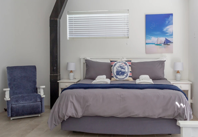 10 Aquavista Cottage in Colchester consists of one bedroom furnished with a King-size bed and two single beds. There are two sofa beds in the living area that can accommodate additional guests. The bathroom is fitted with a bath, shower, toilet and basin. Bathroom amenities are provided for your convenience. There is a fully equipped kitchen which includes a washing machine. The living room also benefits from a fireplace for chilly winter evenings. The open plan living area is beautifully decorated and opens, via a sliding door to a deck with a hot tub, braai facilities and views of the river.