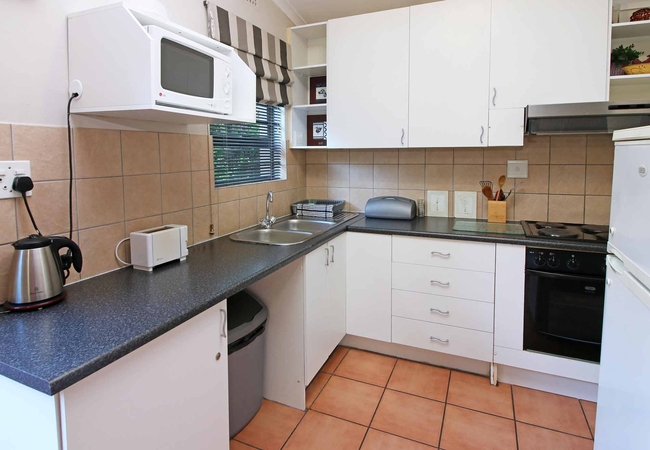 The apartment is furnished with a Queen-size bed and has a TV with DStv. There is a full en-suite bathroom. The kitchen is fully equipped for self catering and includes coffee / tea making facilities.