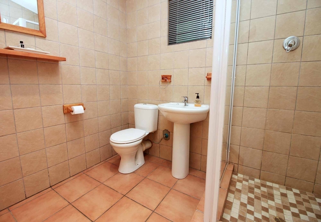 Apartment B is a studio apartment with a King-size bed, a TV with Netflix and an en-suite bathroom fitted with a shower, toilet and basin. The kitchen has a stove and oven, microwave, fridge, coffee-making facilities, crockery and cutlery.
