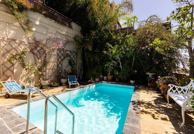 There is a lovely swimming pool for your use as well as a small garden. The apartment has its own spacious private terrace with Weber BBQ. The unobstructed sea view from the terrace is beautiful and Green Point is normally a wind-free area.