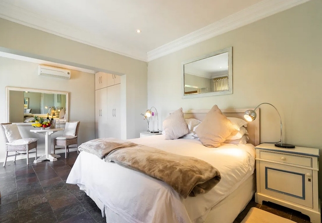 Sleeping two guests, the apartment consists of a spacious open-plan bedroom with extra-length twin beds and 100% percale cotton linen. The dining alcove opens onto the private view terrace. The en-suite bathroom has a separate bath and shower and double hand basin. Top quality bath sheets and towels are provided. The adjoining toilet is separate from the bathroom. The fully equipped kitchenette and all crockery and cutlery, pots and pans and kitchen utensils are of a high quality. There is a flat screen colour TV with all Satellite channels, a DVD player and music system in the apartment. The unit has air conditioning as well as heating. Wi-Fi internet access is available. There is a lovely swimming pool for your use as well as a small garden. The apartment has its own spacious private terrace with Weber BBQ. The unobstructed sea view from the terrace is beautiful and Green Point is normally a wind-free area. The unit is serviced daily except on Sunday and public holidays. An on-site laundry service is available at a nominal extra charge.