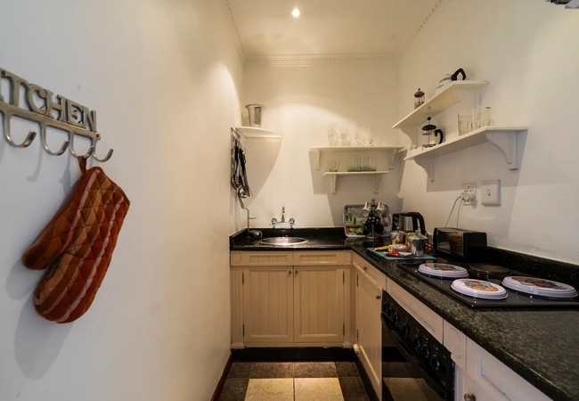 The fully equipped kitchenette and all crockery and cutlery, pots and pans and kitchen utensils are of a high quality.