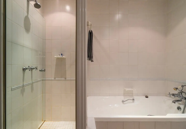 The en-suite bathroom has a separate bath and shower and double hand basin. Top quality bath sheets and towels are provided. The adjoining toilet is separate from the bathroom.