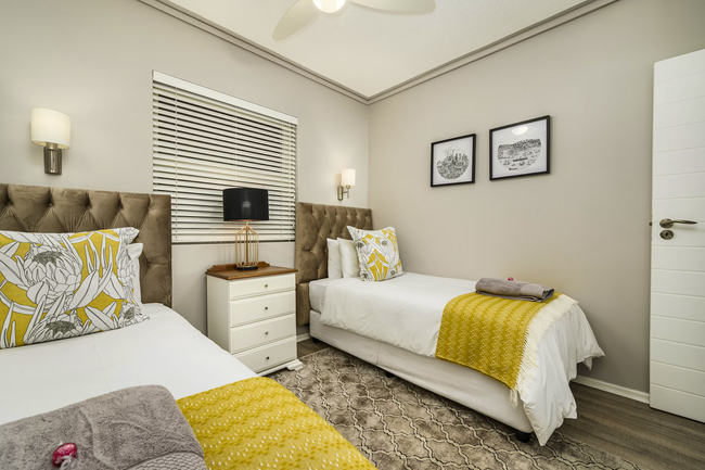 Guests can relax by the communal swimming pool, make use of the communal braai area, or take a short 400-metre stroll to the beach.