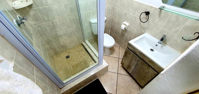 The complex provides a coin-operated laundry, a communal swimming pool, tennis courts, a children’s play area, and a shared braai area. Secure parking is available within the complex, along with additional visitor parking for guests.