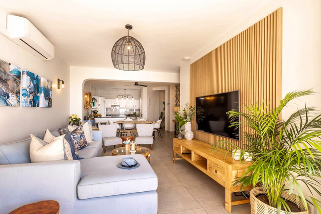 Located within a secure, impeccably maintained complex with direct access to the beach, the stylish 13 Chakas Terrace apartment accommodates up to six guests in comfort. It features three spacious bedrooms and two bathrooms, ensuring plenty of room for families or small groups.