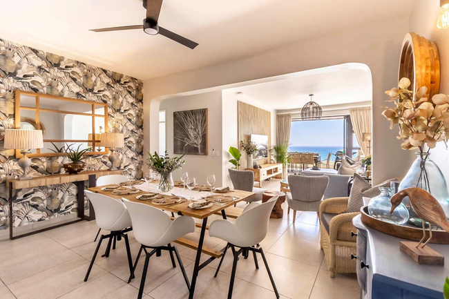 This bespoke, modern apartment delivers an unparalleled beachfront escape, offering breathtaking views of the ocean from its elevated balcony. The apartment is designed for ease of access, with a ground-level entrance (no steps or elevator needed). This layout allows guests to settle in effortlessly and immediately begin enjoying the serene coastal ambiance.