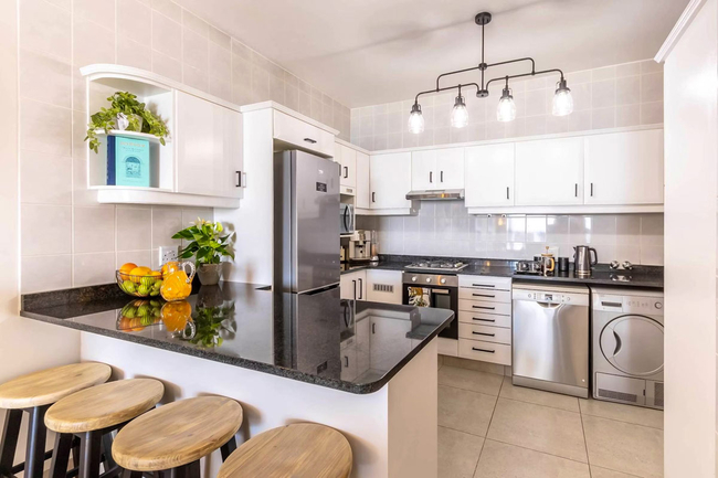 Thoughtfully equipped for a seamless self-catering experience, the apartment’s kitchen offers everything you need, including an electric stove, oven, microwave, dishwasher, freezer, kettle, and toaster.