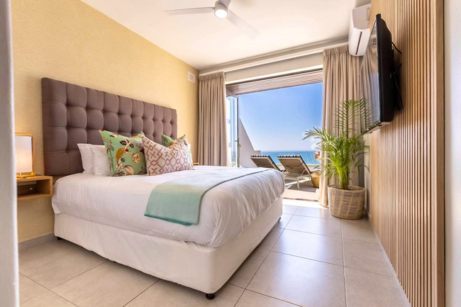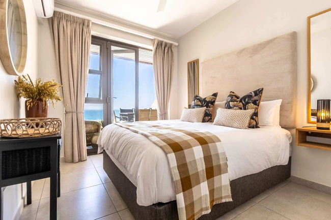 This bespoke, modern apartment delivers an unparalleled beachfront escape, offering breathtaking views of the ocean from its elevated balcony. The apartment is designed for ease of access, with a ground-level entrance (no steps or elevator needed). This layout allows guests to settle in effortlessly and immediately begin enjoying the serene coastal ambiance. Located within a secure, impeccably maintained complex with direct access to the beach, the stylish 13 Chakas Terrace apartment accommodates up to six guests in comfort. It features three spacious bedrooms and two bathrooms, ensuring plenty of room for families or small groups. The main bedroom includes a private en-suite bathroom and direct balcony access, while two of the bedrooms are graced with full ocean views, creating a tranquil atmosphere. The luxurious bedding includes a King XL bed, a Queen XL bed, and two three-quarter beds, all fitted with premium linens for a restful night’s sleep. Thoughtfully equipped for a seamless self-catering experience, the apartment’s kitchen offers everything you need, including an electric stove, oven, microwave, dishwasher, freezer, kettle, and toaster. Guests also benefit from additional conveniences such as a tumble dryer, hair dryer, Wi-Fi (fibre), inverter backup power, and split-unit air conditioning to ensure a comfortable stay. Entertainment options include a Smart TV with DStv, while the balcony’s Weber gas braai provides the perfect opportunity for relaxed outdoor dining.
