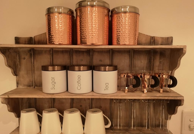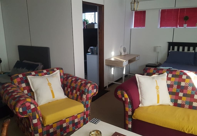 The cottage contains a bedroom which is furnished with a King-size bed. An additional double bed is available in the living area, suitable for two additional guests. Heaters and fans are available in each room. Coffee station, rusks and cereal included. Fresh linen and towels supplied.