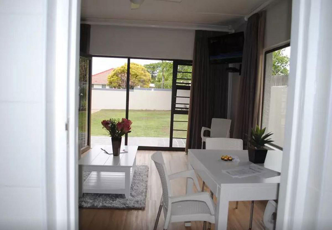The lounge area is comfortable and has a TV with DStv. The kitchen is fully equipped for your self catering needs and there is a private patio area.