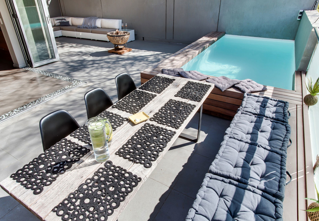 15 On Leeukloof is a holiday home in Cape Town offering accommodation for up to six guests. The villa open spaces with lots of light and magnificent views of the city, Table Mountain, Lion's Head and Devils Peak.