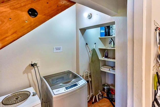 The house is equipped with an alarm system and remote-controlled gate access for added security. Parking is available, with undercover space for one vehicle and open parking for 2-3 additional cars. Guests should be aware that both the driveway and the path leading to the beach are steep.
