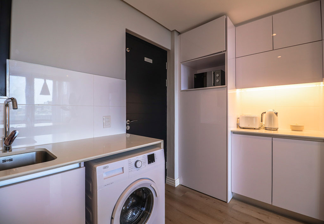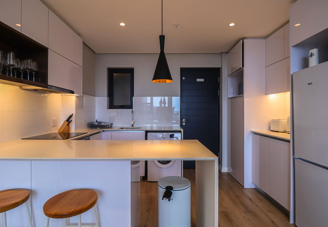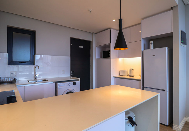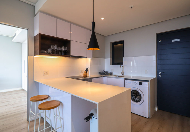 16 on Bree 1425 has one bedroom furnished with a Queen-size bed from where you can enjoy the views. The en-suite bathroom is fitted with a huge walk-in shower, basin and toilet. The kitchen is equipped with all that you will require during your stay, including a washing machine, microwave, toaster and kettle. Free Wi-Fi is available throughout the apartment, while the lounge is equipped with a smart TV and seating area that make sit perfect for the evening snuggle with a loved one while watching a movie or two. Roll open the sliding door take a step out onto the Juliette balcony. You'll have your own secure parking space and the building comes with Lifts, Water Filters, 24 Hour manned security with a biometric system and more.