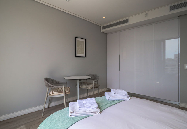 16 on Bree 1425 has one bedroom furnished with a Queen-size bed from where you can enjoy the views. The en-suite bathroom is fitted with a huge walk-in shower, basin and toilet.