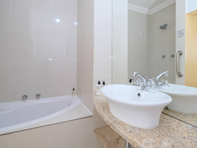 This two bedroom suite features an en-suite shower in each room, twin beds, fully equipped kitchenette, dining area, and family lounge with flat screen satellite TV's, ceiling fans / wall-panel heating, a safe and private balcony/courtyard with BBQ “braai” area.