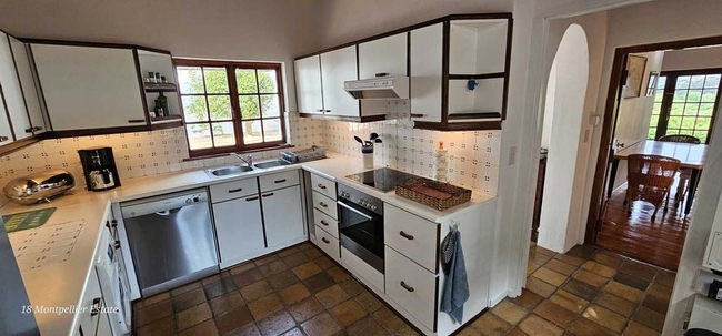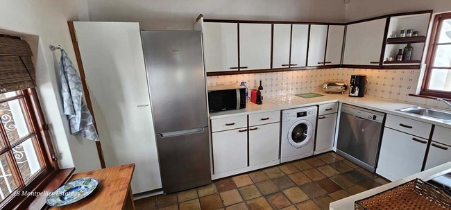 The fully equipped kitchen features premium Bosch appliances, including a dishwasher, microwave, washing machine, and fridge, as well as both a Nespresso and filter coffee machine, perfect for relaxed mornings or effortless entertaining at home. The cottage has a private pool.