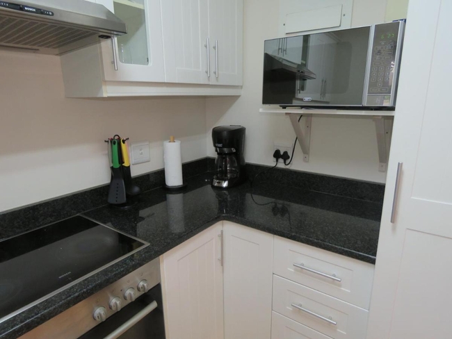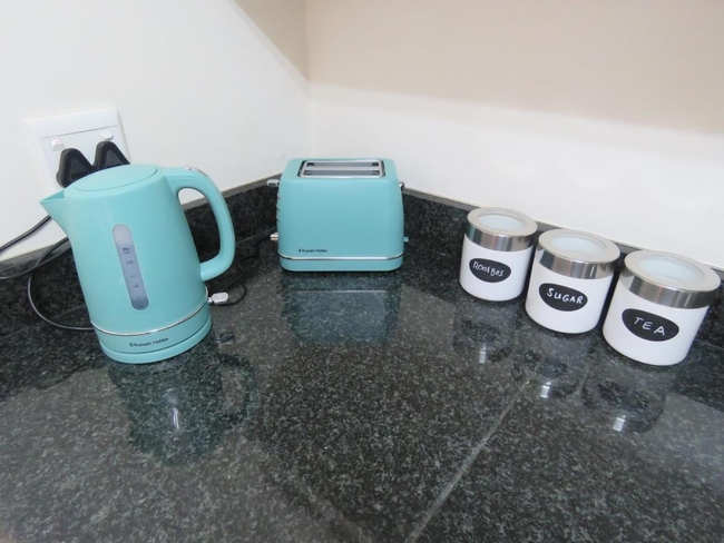 The unit is equipped with a solar power system and battery backup to provide uninterrupted electricity during load shedding, with the exception of the oven and heaters.