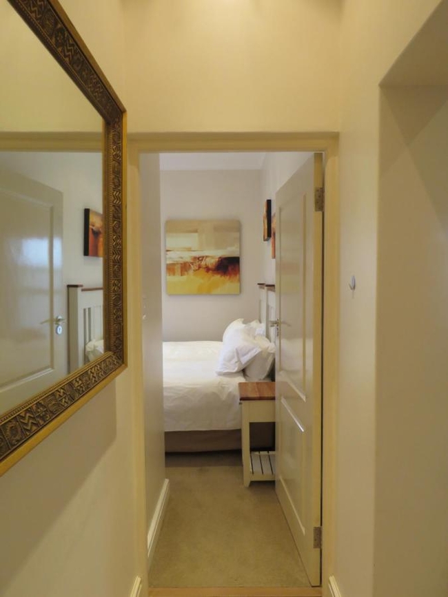 Accommodating up to four guests, the property features two well-appointed bedrooms and two bathrooms. The main bedroom includes an extra-length king-size bed and an en-suite bathroom with a modern walk-in shower. The second bedroom is fitted with twin beds and has access to a private bathroom with a shower.