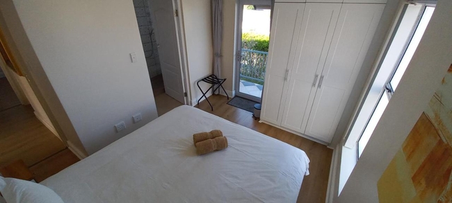 The unit is equipped with a solar power system and battery backup to provide uninterrupted electricity during load shedding, with the exception of the oven and heaters. Accommodating up to four guests, the property features two well-appointed bedrooms and two bathrooms. The main bedroom includes an extra-length king-size bed and an en-suite bathroom with a modern walk-in shower. The second bedroom is fitted with twin beds and has access to a private bathroom with a shower. The kitchen is fully equipped with a fridge-freezer, microwave, oven with a gas hob, coffee machine, kettle, and toaster, making meal preparation convenient and enjoyable. The adjacent lounge provides a cozy retreat with reclining sofas and a smart TV offering Netflix for entertainment. Outside, the patio includes a braai area and an outdoor dining space, ideal for al fresco meals. Fibre Internet ensures seamless connectivity, and secure parking is available for added peace of mind. Beyond golf, the estate features a clubhouse, a restaurant, scenic mountain views, and ample opportunities for walking and cycling. Its location also offers easy access to other nearby golf courses and George Airport.