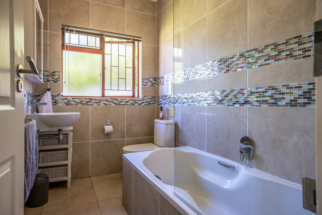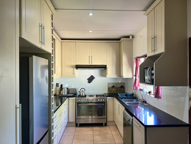 Designed with comfort and practicality in mind, this spacious four bedroom house provides ample room for both relaxation and socialising, while comfortably hosting eight guests. The main bedroom is fitted with a king size bed and features an en suite bathroom with a shower over the bath. The second bedroom is furnished with a double bed, while the third bedroom offers two single beds, with these two rooms sharing a bathroom fitted with a shower. The fourth bedroom also contains two single beds and includes a private en suite bathroom with a shower, toilet and basin. The kitchen is fully equipped with a fridge freezer, stove, oven, microwave and dishwasher, ensuring effortless self catering throughout your stay. The living area offers a comfortable lounge suite, a television and a dining table, creating a welcoming space for meals and downtime. Outdoors, guests can enjoy a splash pool for cooling off on warm days, along with a built in braai area and outdoor dining table for easy entertaining. The property is fitted with an inverter to provide electricity during power outages, and a cleaning service is included for added convenience. The property offers an inverter during load shedding to support television use and device charging, complimentary Wi Fi for guests, and secure on site parking with limited height clearance suitable for standard vehicles rather than taller SUVs.