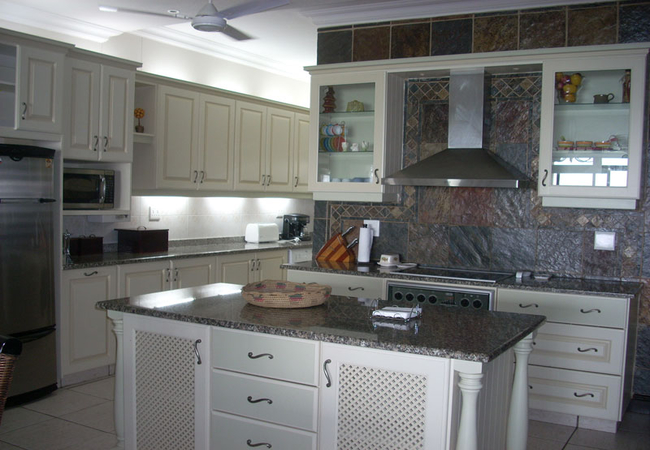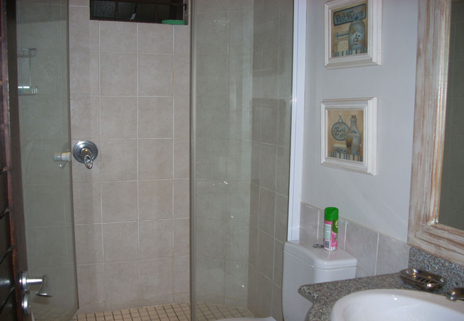 The other three bedrooms have two single beds each with own bathrooms - either with bath or shower. All linen is of top quality percale, and bath and beach towels are provided. The apartment is serviced daily, except Sundays and public holidays. If services are required on those days, it can be arranged. A camp cot is provided if required.
