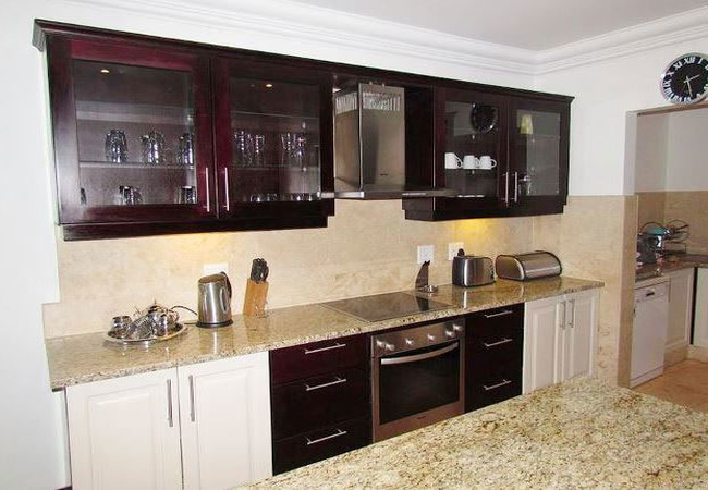 The living area is open plan and has a comfortable lounge with a flat screen TV, a DVD player and DStv. There is a dining table and a fully equipped kitchen containing everything you will require during your self catering stay.